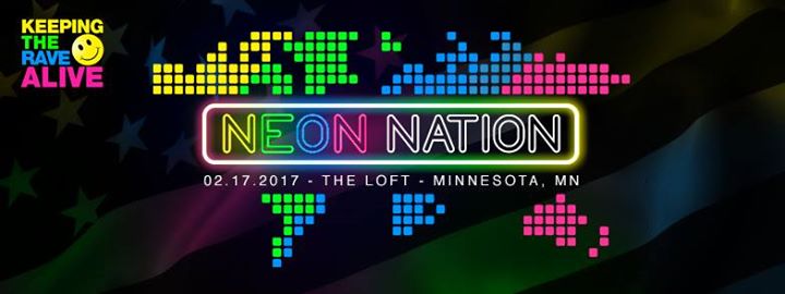 Keeping The Rave Alive presents Neon Nation Friday, February 17th, 2017 The Loft, Minneapolis, MN 711 Hennepin Ave Minneapolis Mn, 55403 LINEUP Kutski + special guests (to be announced!) Mainroom: TBA DARKROOM: Flinx Cabin Boy Tage and Sanner Twilight Lemonaide Infernal Imp 18+ Presales: $20 at http://www.skywaytheatre.com Door: $25 Come get your rave on!!!