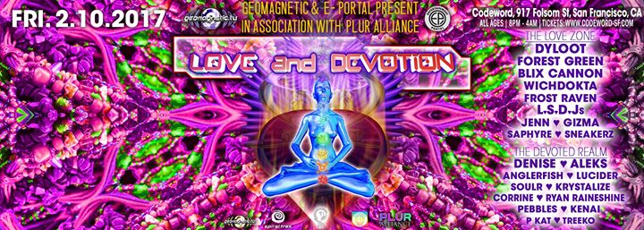 Geomagnetic, Entertainment Portal in Association with PLUR Alliance present the legendary community gathering: ..::Love & Devotion 2017::.. As a PLUR community we choose to exist in a mutually beneficial paradigm free from conflict and ego. Leading by example is the best way to demonstrate this process works. From across the many spectrums of dance music … Continue reading Love & Devotion feat. Dyloot, Forest Green, Blix Cannon, + More!